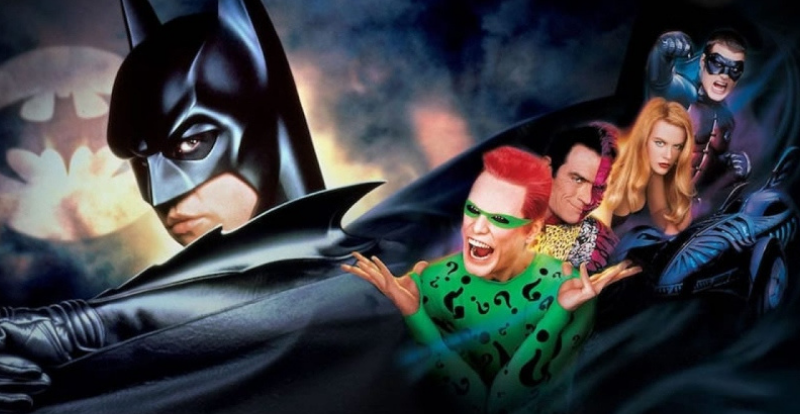 O primeiro é “Batman Eternamente”, estrelado por Val Kilmer no papel do herói e Jim Carrey como o vilão Charada. Na época de seu lançamento, o filme alcançou a maior bilheteria de estreia de um fim de semana, somando 52 milhões de dólares.