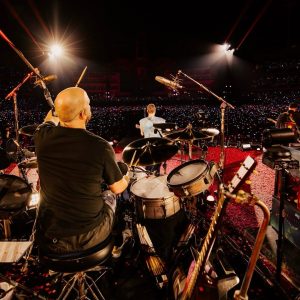 Essa mesma bateria, conhecida como Bateria Vanguarda, já havia tocado com a banda no show do dia 28 de março de 2023, no Estádio Nilton Santos, no Rio. Na ocasião, eles dividiram o palco em versões especiais de “Biutyful” e “Fix You”.